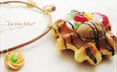 フェイクスイーツ 粘土|ベルギーワッフルの(チェーンネックレス&革紐とリボンネックレス) 樹脂粘土で作ったリアルサイズのワッフルをネックレスにしました 2025.10.22 ┗ ワッフルフェイクスイーツ