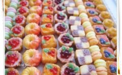 粘土で作った8㎜サイズのミニチュアスイーツをブレスレットに仕立てました。カラフルで可愛い小さなスイーツの制作過程や、フォトフレームに並べた様子もご紹介。