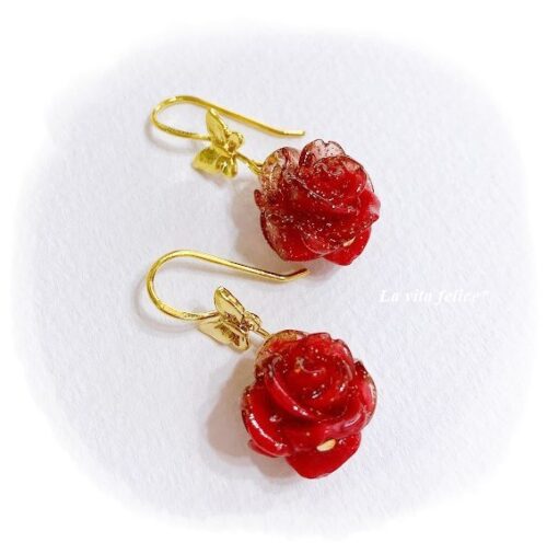 ダブルフェイスの薔薇を使ったピアスです