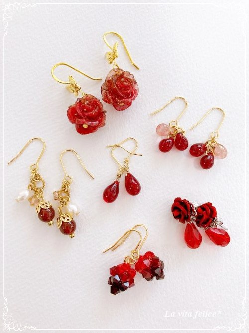 ビーズアクセサリー|深紅のきらめきー秋に映える赤いピアス